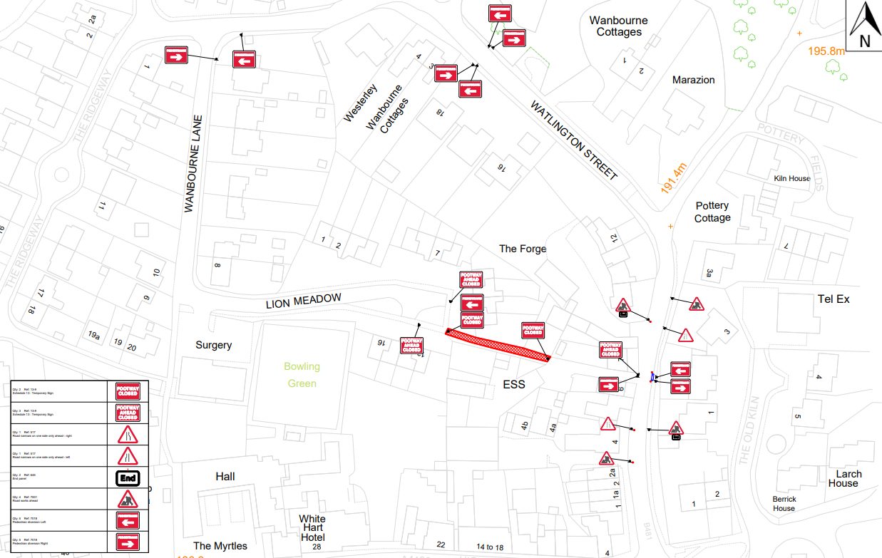 TTRO closure of Footpath 25 (Public Right of Way between Lion Meadow and Watlington Street) – extended to 19/2